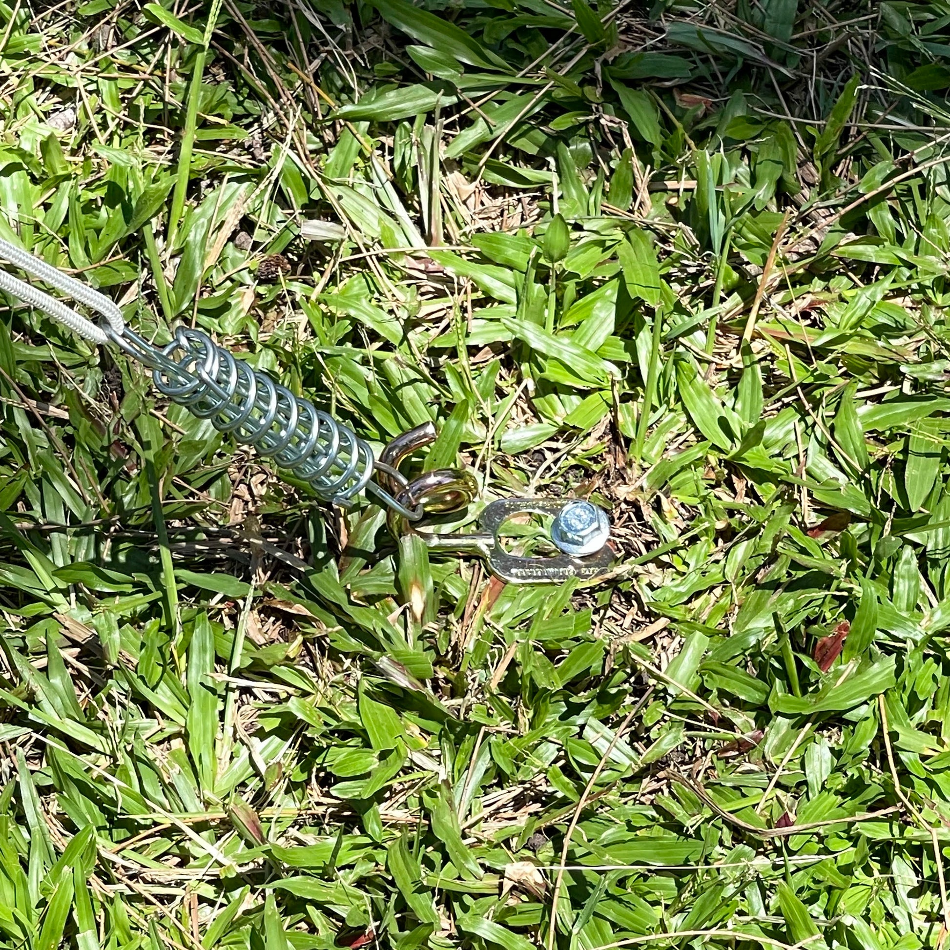 The Pigtail Hook offers a fast, tool-free way to attach guy ropes and tension lines. Simply screw it into the top of your GroundGrabba and loop in your rope—ideal for quick adjustments during windy or shifting conditions.