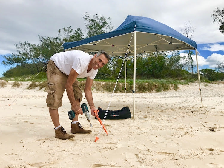 Drill-powered anchors that keep your setup steady—shoreline to campsite, tide or wind