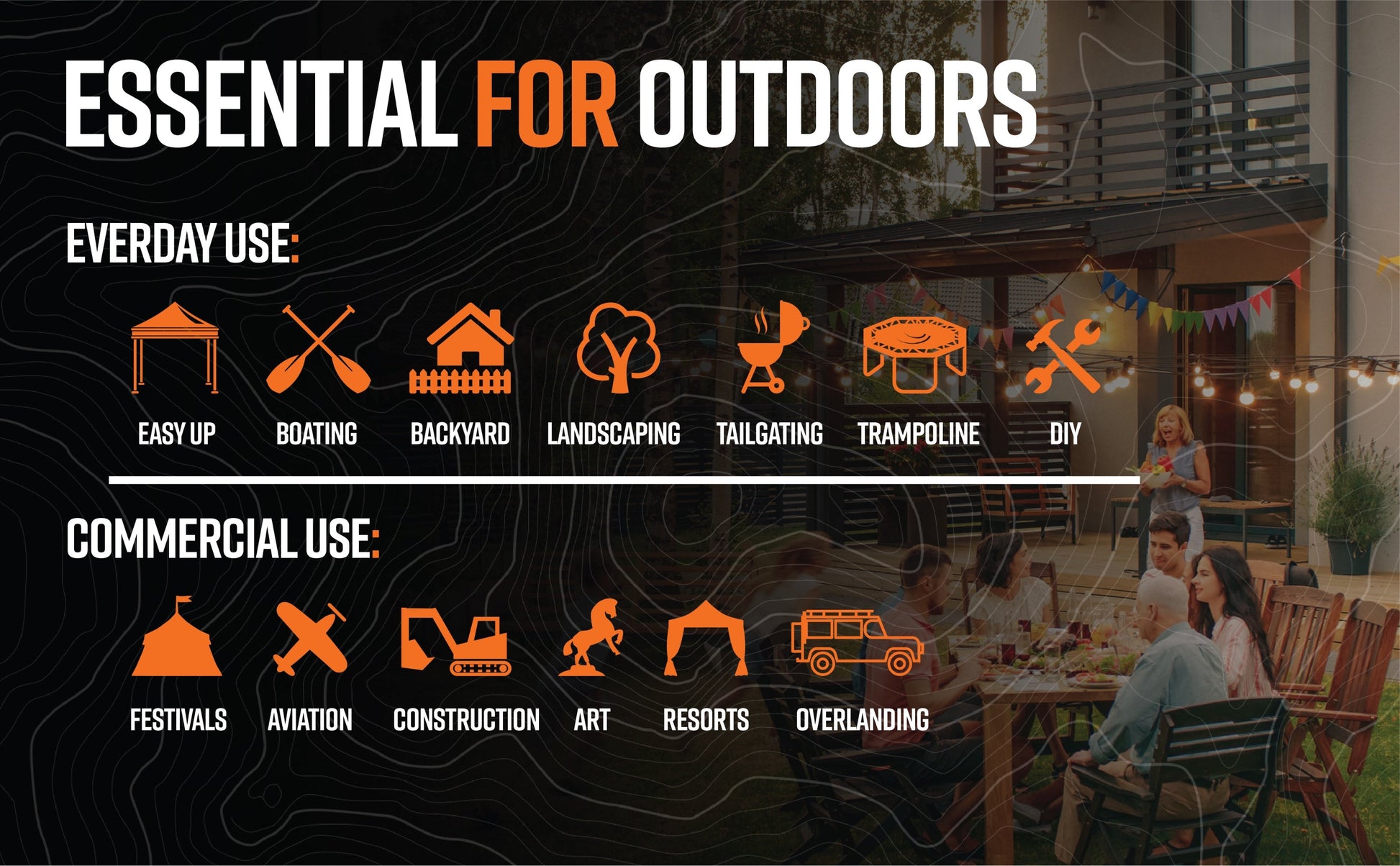 The 615mm-long GroundGrabba Pro II offers deeper anchoring for setups that demand extra stability—like tying up your boat on the beach or riverside, large shade tents, 4WD awnings, or freestanding enclosures. Built for soft sand, clay, or loose earth, it's a go-to for secure outdoor hold.