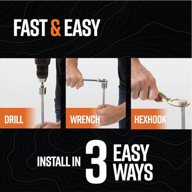 The image below is the GroundGrabba Pro ll and can be driven by hand using a wrench with the right socket or you can use your battery drill.