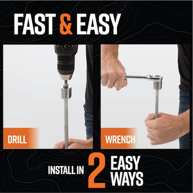- Fast, drill-powered setup