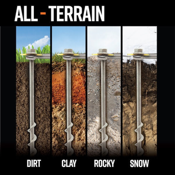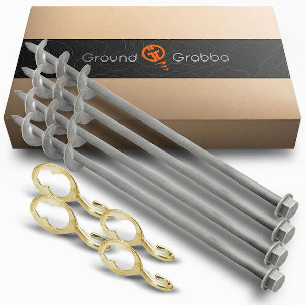 Or, you could use our new GroundGrabba Junior which has threads that do not protrude out from the shaft making them easier to screw into harder grounds. But be awaare they do not hold the same loads as the Pro series.