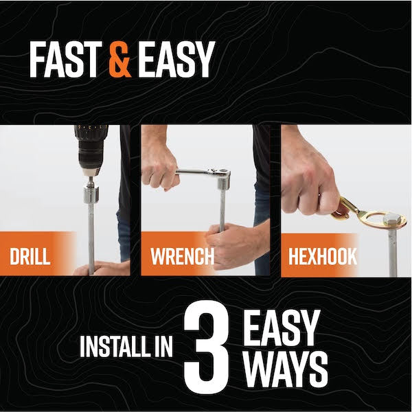 Whether you’re pitching a family tent, setting up a 4WD awning, or staking down an annexe, GroundGrabba pegs are drill-driven for fast installation and rock-solid grip. They’re made from tough carbon steel or reinforced nylon, engineered to twist deep into the ground using your cordless drill or impact wrench. No hammering. No bending. No worries.