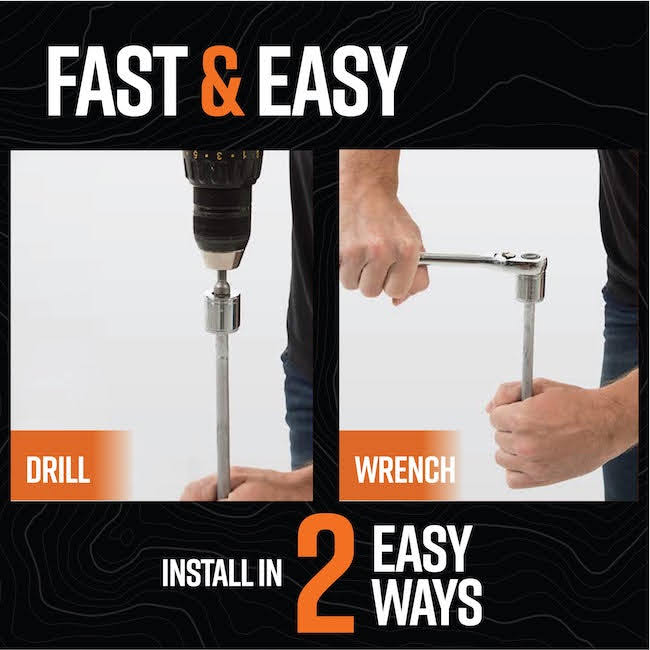 - Install the GroundGrabba – Use your cordless impact wrench and included socket driver to drive the anchor into the ground.