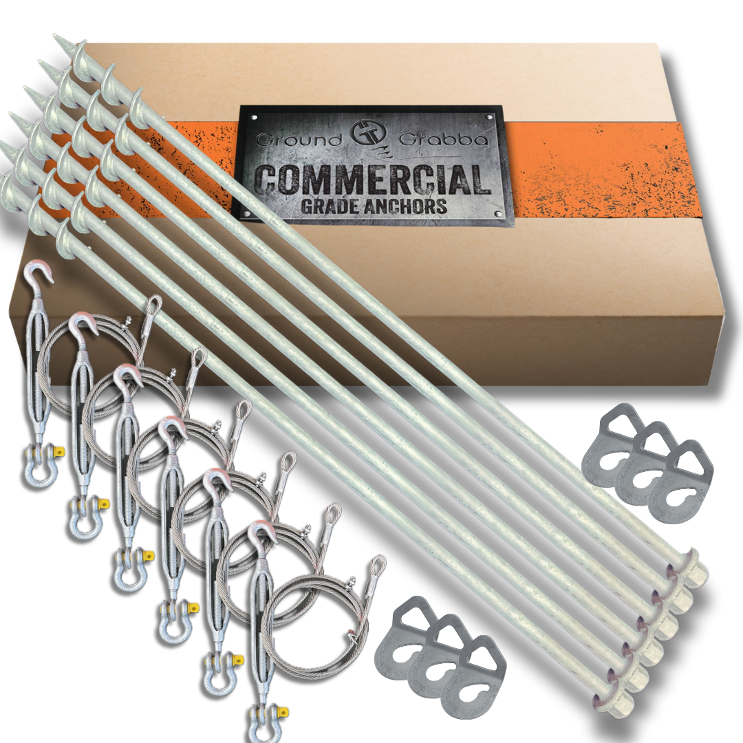Our Portable Building & Tiny Home Ground Anchor Kits are designed to securely tether mobile and semi-permanent structures to the ground using high-strength drill-in anchors and heavy-duty connection hardware.